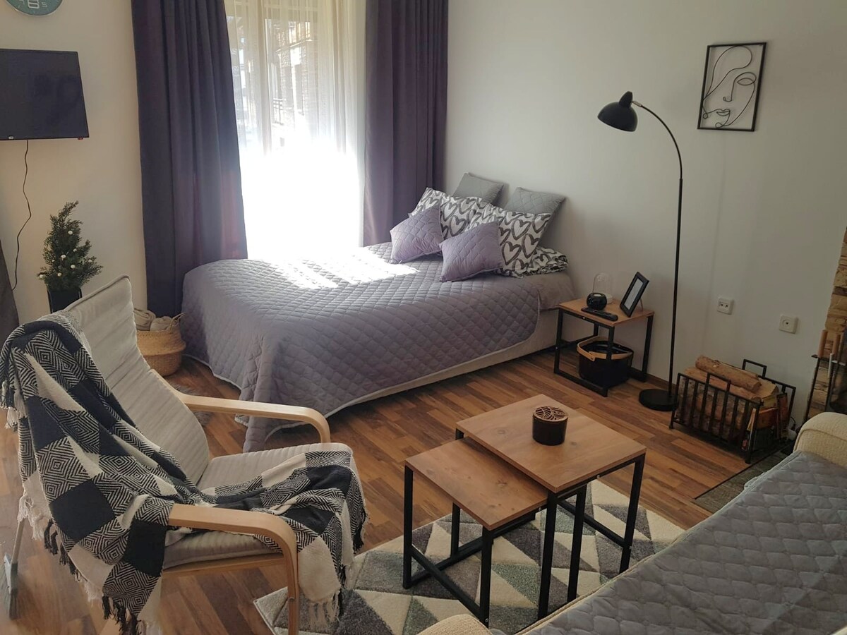 Luxury apartment, situated in the heart of Bansko- on the Main Street, just next to the main ski lift. The apartment is 70m2 and offers the perfect vacation for a family/group of friends up to 4. The apartment: - A big open space living room with fully equipped kitchen, dining table, comfortable and large sofa (full bed option), TV, high speed internet, very nice view of the city and mountains. - Spacious bedroom , with comfortable bed, large wardrobe and TV. - Modern and large bathroom.
