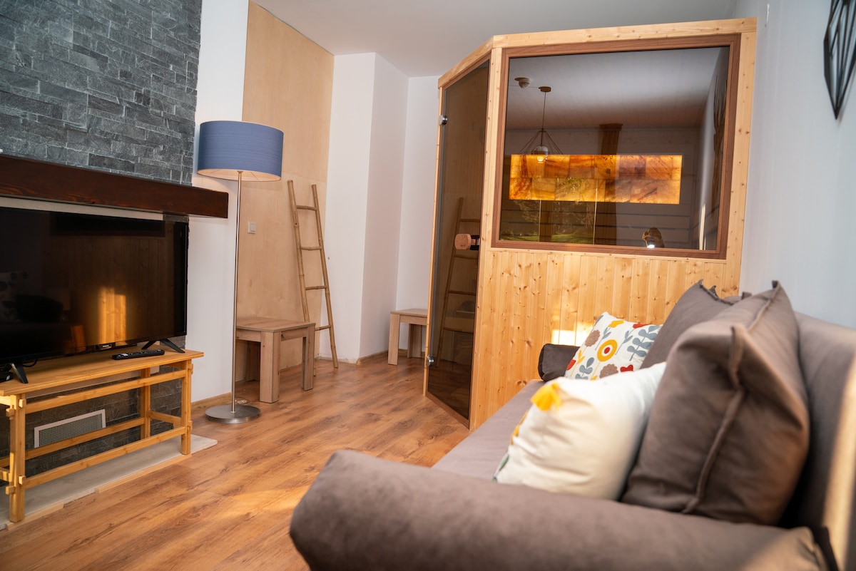 (提供滑雪班车)舒适单间公寓2,带水疗中心