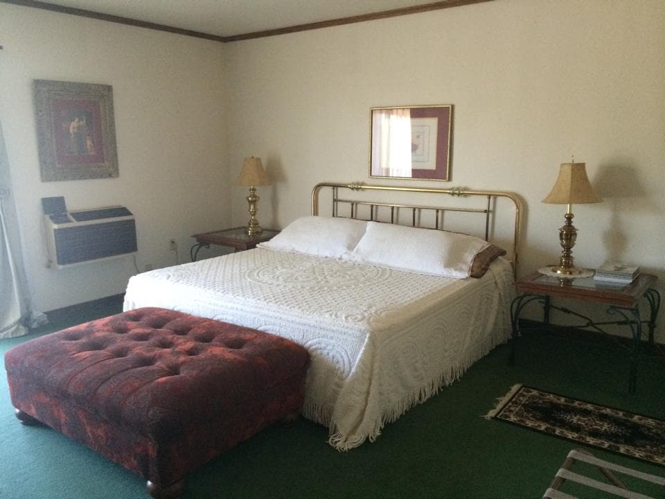 This room has a king sized bed with a deck view of the parking lot. There is a rollaway bed available if need for an extra guest.