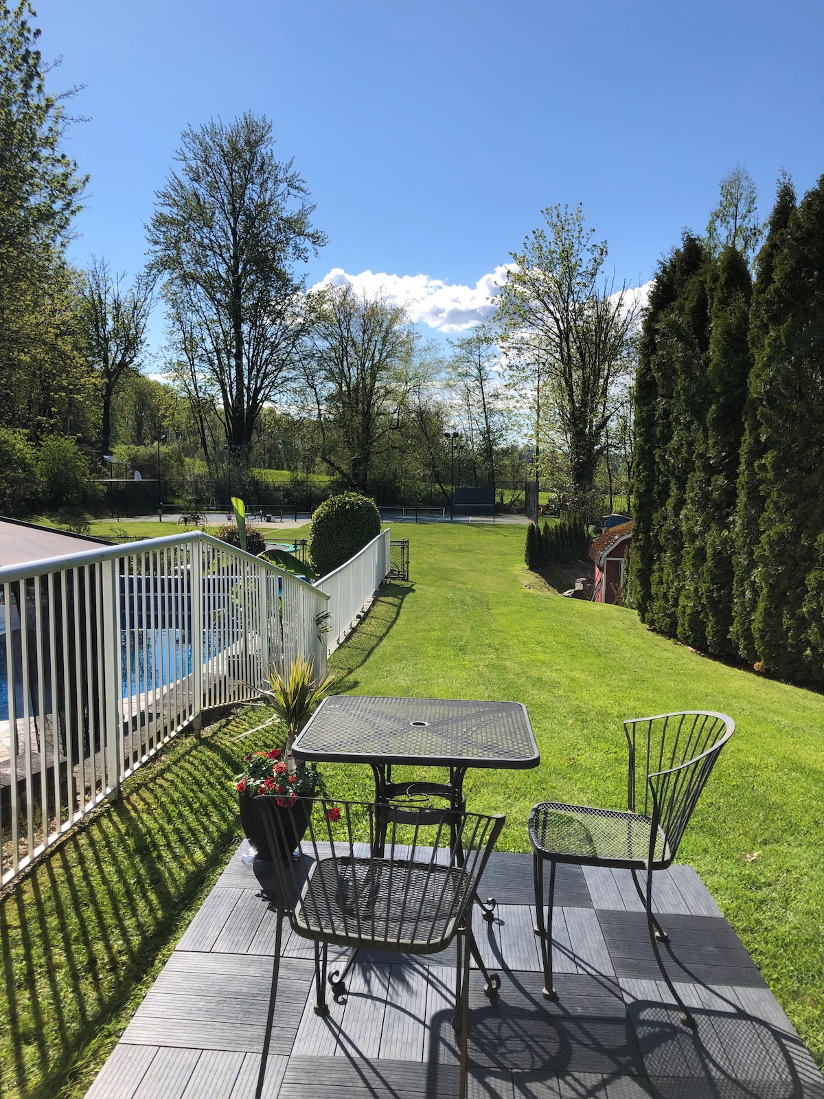 Bright and clean studio suite, private and self contained. Entrance at the back of the house. Designated parking on our driveway. Completely furnished and ready for your enjoyment. Suite opens up to our backyard that includes a tennis court/pickleball court and green space. We are located 4 min from the Fraser River on a quiet, residential street. Close to hiking trails, Seven Oaks Mall and Lepp Farm Market with local fresh produce. 15 minute drive to Abbotsford Airport and West Coast Express!