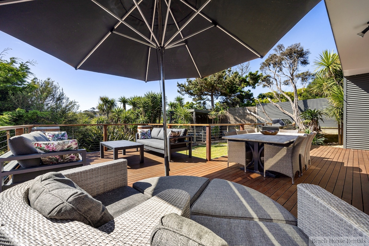 This is the house that beach holiday memories are made of. Relax in this fully renovated 3 bedroom 1 storey tranquil beach house surrounded by moona trees in a very quiet area only 600m away from the family friendly White Cliffs foreshore. Ideal for both family holidays or a couple looking for a relaxing beach retreat. Easy access to explore; the marvellous wineries and golf courses on the Peninsula, the award winning Peninsula Hot Springs or many costal walking trails.