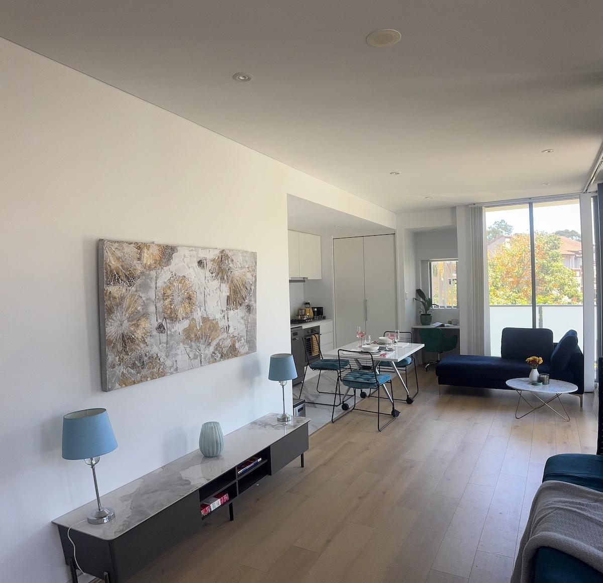 A dream coastal getaway yet conveniently located just 10 minutes from Sydney airport and 20 minutes from the city. This spacious Santorini-inspired loft studio is perfectly situated with the beach, restaurants and cafes a short walk away. It features an open layout with a living space, kitchenette and calming interiors. Unwind in the designer bathroom, a sanctuary with a serene aesthetic, perfect for refreshing after a day by the ocean. This curated space offers comfort, convenience and style.