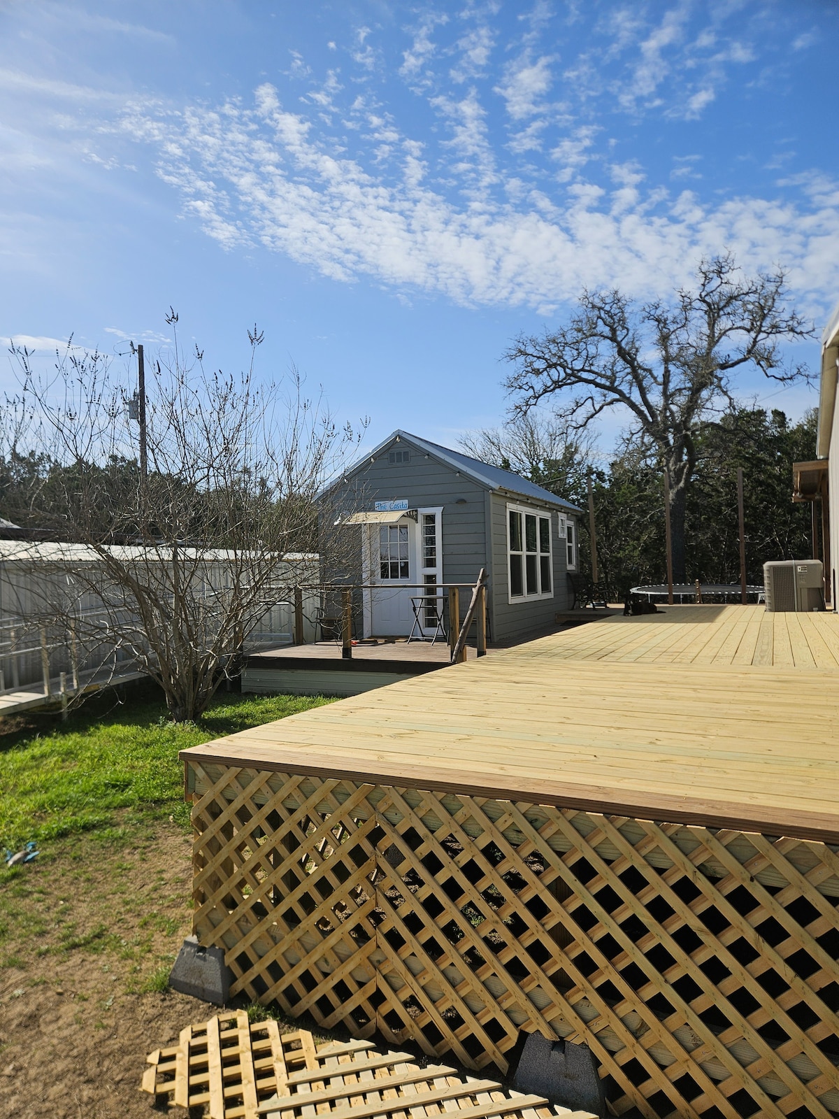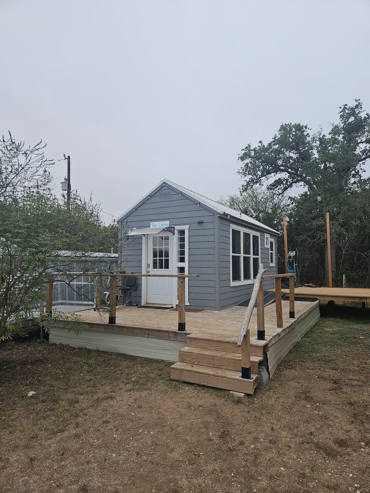 The guest house is separate from my main home. It is an efficiency space with a comfortable bed, work space and bathroom with a coffee bar, mini fridge and microwave. There are games and books to enjoy. This is not the Hilton, this is the hill country. There is tv with a few dvd’s. As hosts we promise and stand by a clean comfortable place to rest and recharge. Please make recommendations on what to add!