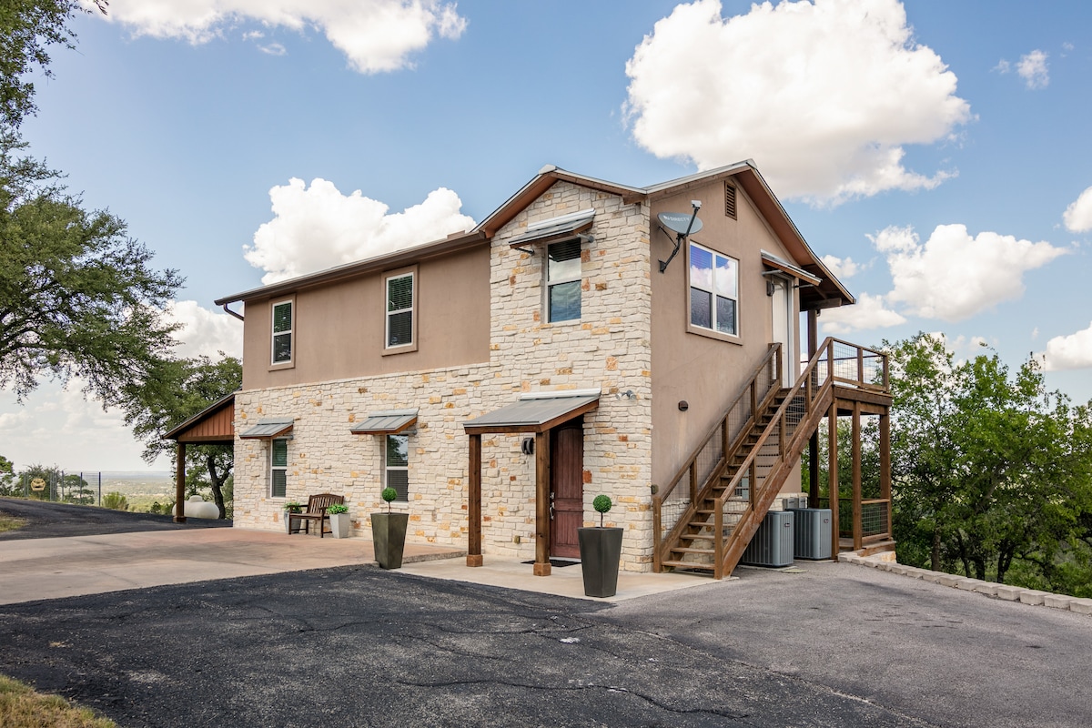 Serenity and Views is what Our Hill Town is all about. Come enjoy your private getaway, while being only a 10 minute drive from the city center. Look over the balcony and see nothing but undulating hills and all the various trees that Texas has to offer. The serenity and privacy are unmatched. We are 7 miles outside of the city tax limits, so there is no city tax due, only a State hotel tax of 6%. Completely worth the visit!