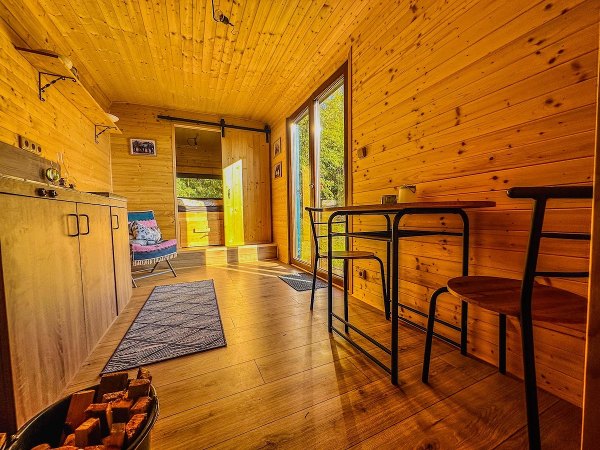 Toto jedinečné ubytování má svůj osobitý styl. Příjemné pohodové ubytování s plně vybaveným kuchyňským koutem, netradiční koupelnou, kde Vás při relaxaci budou provázet hvězdy. Součástí ložnice je útulný obývací pokoj s gaučem a TV. Před apartmánem je venkovní posezení. Možnost parkování přímo před objektem.