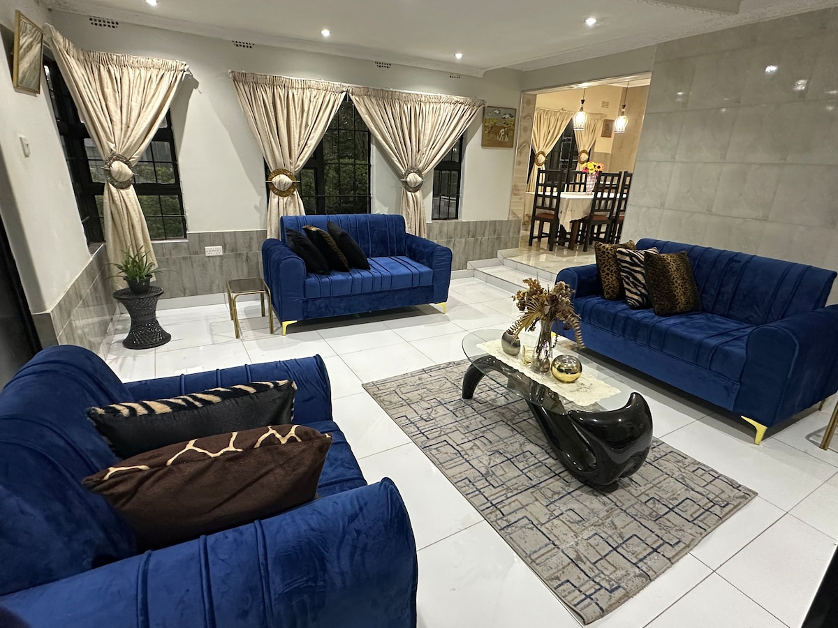 Escape to our modern minimalist villa, just 25 minutes from Blantyre city center. This serene retreat features 4 large ensuite bedrooms with bright, elegant decor. Enjoy solar-powered electricity, a borehole water system, and a sleek design with open, sunlit spaces. Guests have full access to all amenities, including a well-equipped kitchen and outdoor relaxation areas. Nestled near Mpemba, experience peaceful living with city convenience nearby. Book your stay today!