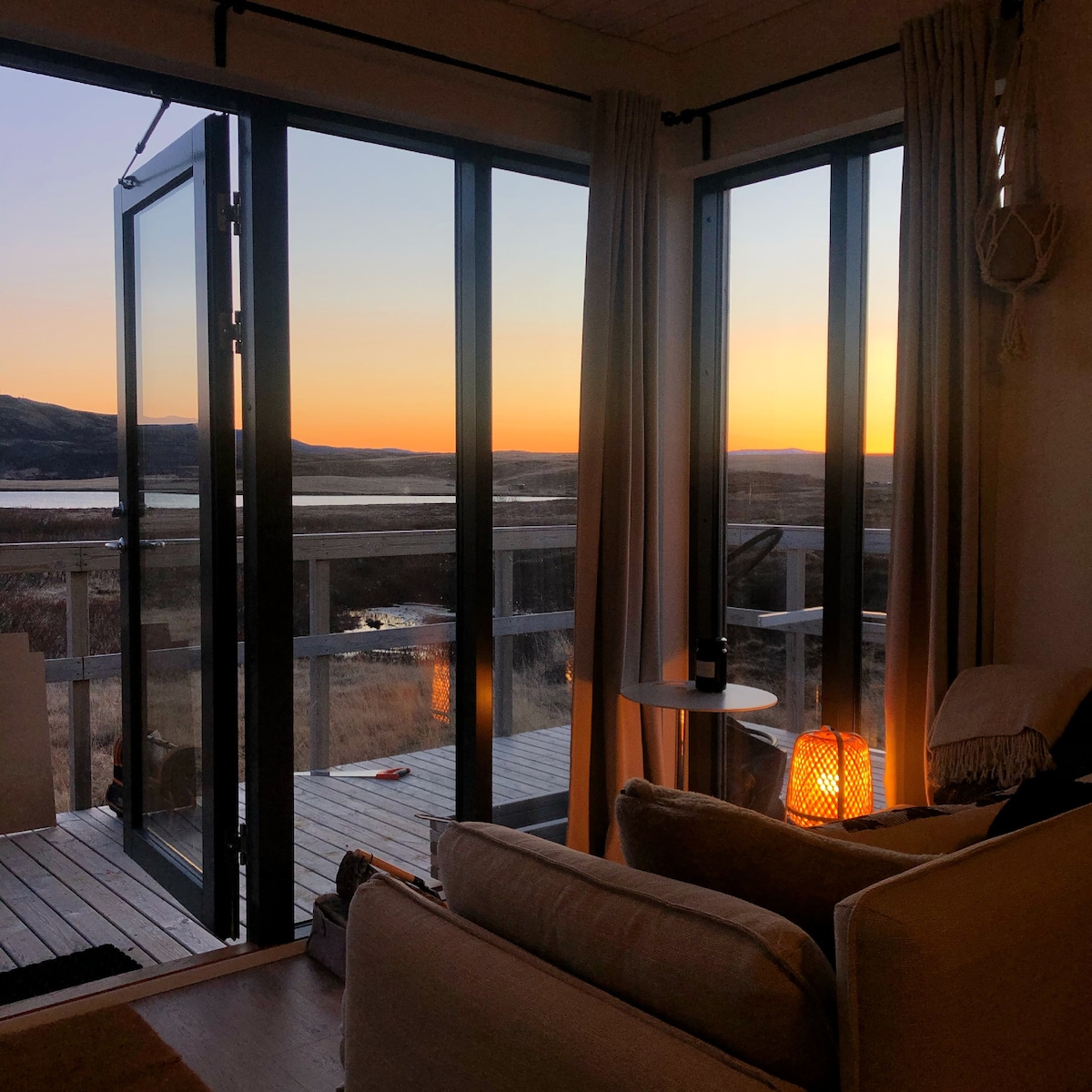 Blue View Cabins are perched on a hill, surrounded by breathtaking mountain scenery. Perfectly located to catch the Northern Lights from your own geothermally heated hot tub, they offer a magical experience under the right conditions. Nearby, enjoy great restaurants like Mika, Friðheimar, and Vínstofa Friðheima within walking distance. The brand-new Laugarás Lagoon, just 10 km away, also has a cozy in-house restaurant.