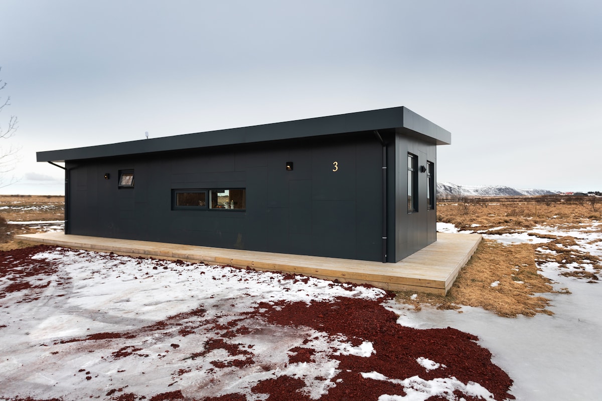 This classic cottage is in the Golden Circle route, east of Þingvellir lake. The cottage is 28m2, you will have a big terrace where you can relax and cook food on the grill. About 10min walk to Þingvellir lake, where it is allowed to fish. Approx. 35-40min drive to Geysir. The space This is an open space cottage, where the kitchen is well equipped so all you need to bring is your groceries. The bathroom has a shower and a blow dryer. This cottage is suitable for a couple with two 90cmx2m beds.