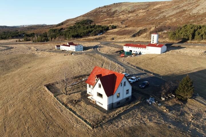 The perfect place for a couple to unvind after exploring the beautiful nature! Walk a few steps to the back yard and you'll find a peaceful stream. It's located close to the Golden Circle, South Coast, snowmobiling, hot springs, Friðheimar Green house, Sólheimar and much more. Queen bed, kitchenette with basic kitchen utilities, kettle, toaster and one induction plate. A great place to lay in bed and look out for Northern Lights.