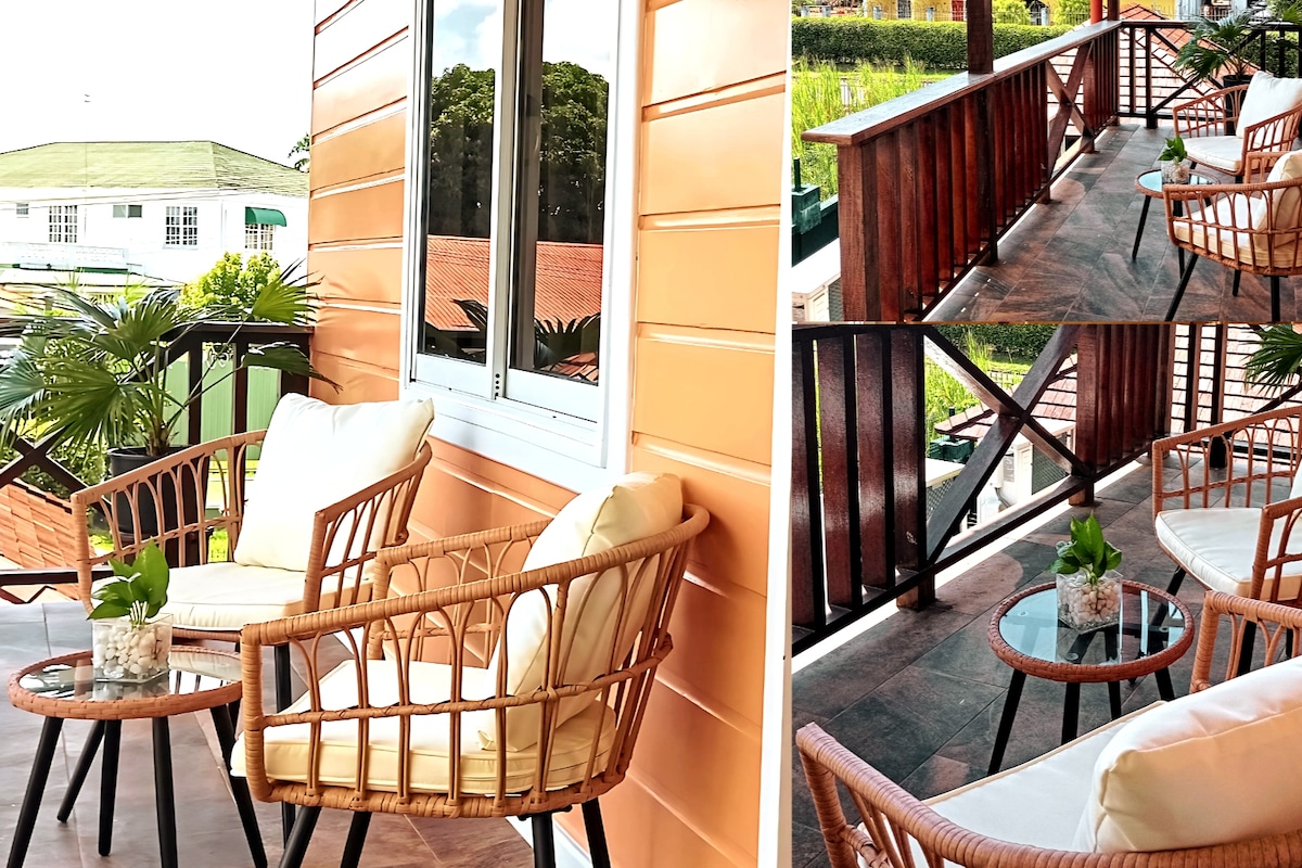 This Unique Colonial style modern Paramaribo fully air-conditioned 2 bedroom apartment is located in Paramaribo North, and is 1 0f 2 apartments on the first floor in the building. It is very close to the Paramaribo Entertaiment center. Near the Riverside (waka pasi) Clubs, bars and restaurants about 10 minutes away. A Cozy yet spacious apartment, fully furnished & air-conditioned, Wi-Fi, 2 bedroom, 1 living room, bathroom and kitchen plus utensils. Perfect for Couples or groups of friends.