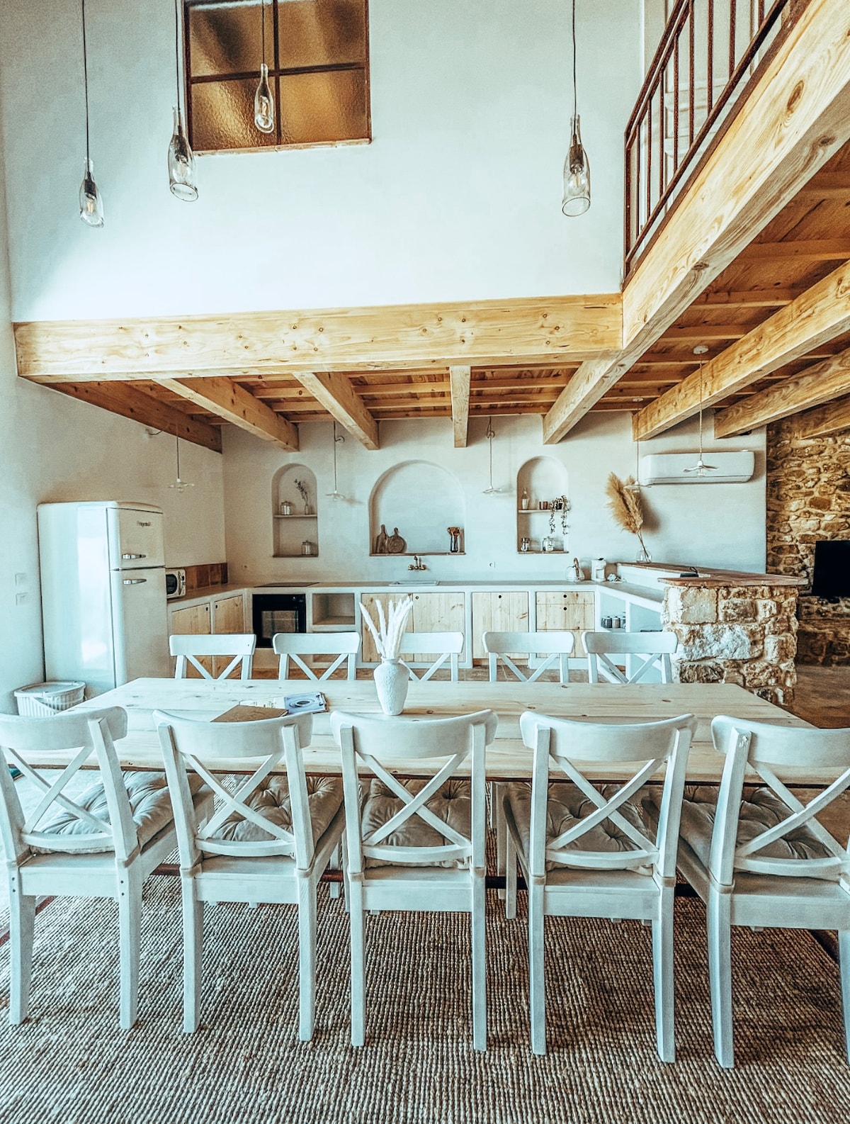 Our apartment is in the heart of Uzes, close to the shops and restaurants. You'll enjoy it for its location, the lively and charming atmosphere of the place, the calm at all times, ample volume and brightness. Perfect for couples, solo travelers and families (with baby). It has a large living room with an open kitchen with a bar, a large bedroom with a stone fireplace, a bath with shower, toilet in the bedroom area and a south orientated balcony.