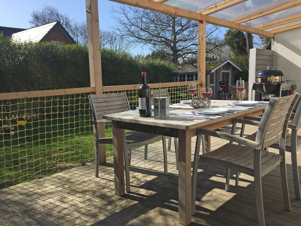 Rækkehus, beliggende lige i hjertet af Blåvand.(Bygget 2017) 82 m2. Overdækket terrasse 17 m2 mod vest. Flere restauranter indenfor 100 m. Supermarked og bager, 50 m. Egen parkeringsplads. Alle typer forretninger i gå-afstand. Blåvand Fyr 4 km.(Danmarks vestligste punkt) Til strand ca 3 km. Grunden grænser op til skov.Til Tirpitz-museet ca 4 km.(Huset er velegnet til 1-2 par. Et par m. 1-2 børn) IKKE-rygerhuse. Ingen dyr tilladt.
