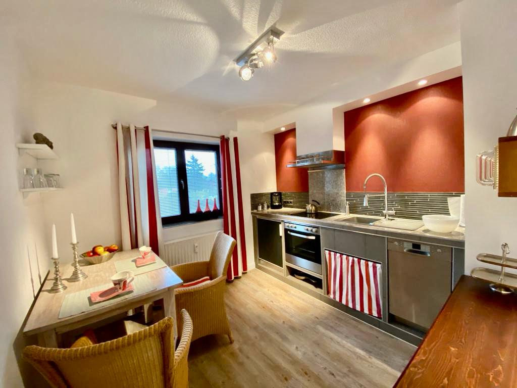 Charmante, familienfreundliche Ferienwohnung auf voll bewirtschaftetem Gutshof (Feldwirtschaft)! Wohnzimmer mit Kaminofen, Schlafzimmer mit Doppelbett, großzügiges Duschbad mit Waschmaschine, hübsche, voll ausgestattete Küche mit Essecke. Das Sofa im Wohnzimmer ist ausziehbar zu einem weiteren Doppelbett. Babyreisebett, Babybay und Babywanne vorhanden. Kleiner Terrassenbereich vor der Haustüre, Garten nach hinten, Gartenmöbel vorhanden. Hunde sind nach Absprache willkommen!