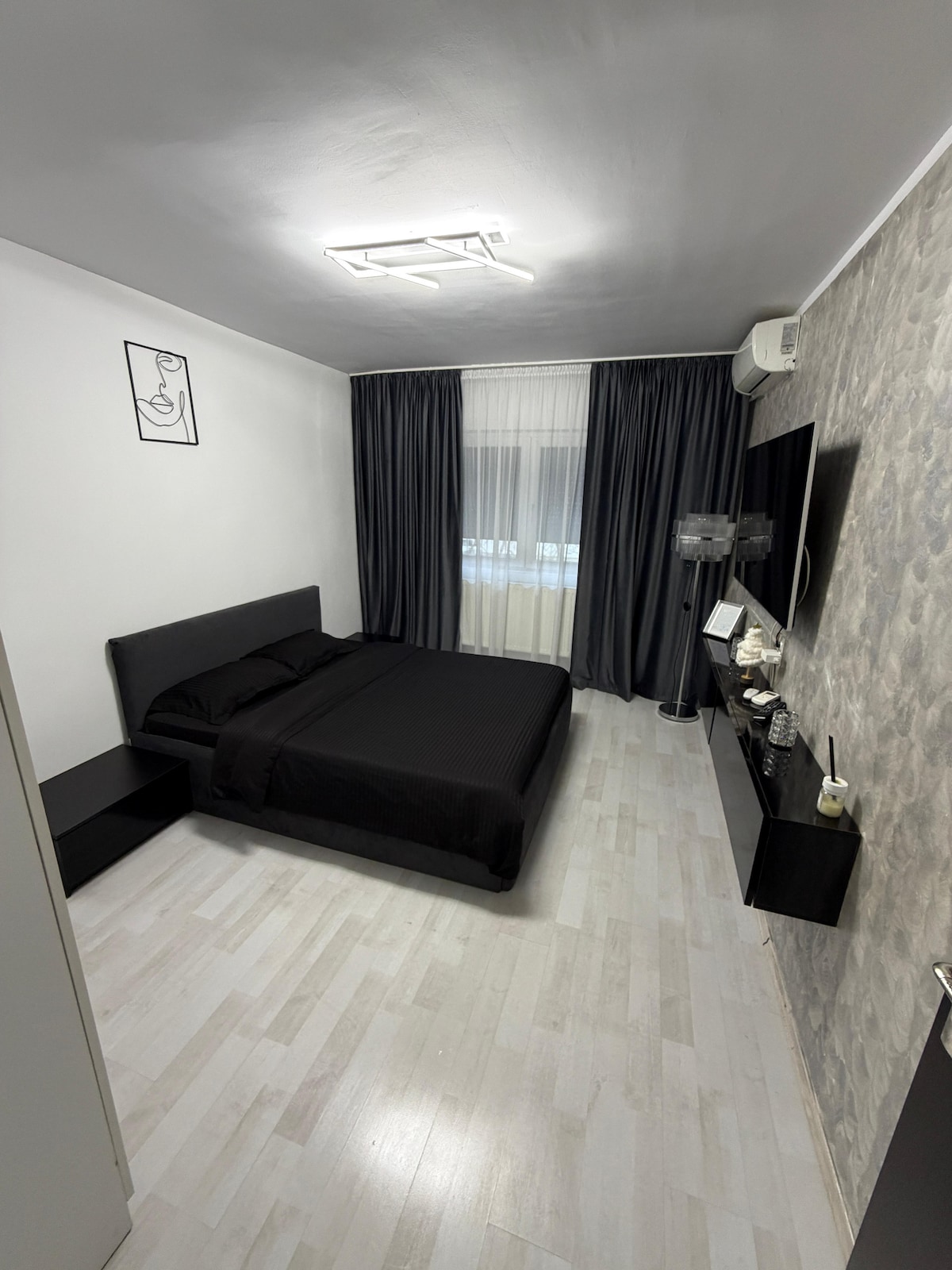 Apartament premium cu două camere, ideal pentru un sejur relaxant, perfectă pentru cupluri, familii sau călători singuri. • Dormitor: Pat matrimonial, TV, dulap spațios. • Living: Canapea extensibilă, TV Smart, spațiu luminos. • Bucătărie: Echipată complet cu electrocasnice și ustensile. • Baie: Cadă cu hidromasaj, articole de toaletă. Facilități: • Wi-Fi rapid • Aer condiționat • Căldură centralizată • Mașină de spălat rufe • Parcare. Localizare excelentă! Rezervați acum!.