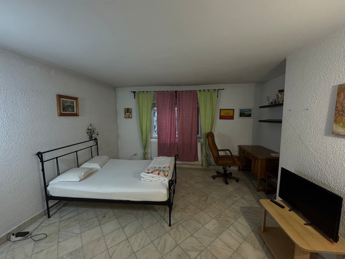 Welcome to a place of total tranquility and peace. Your own house with a private bathroom and kitchen, a living room and a bedroom, 2 separate entrances, a spacious 1400sqm garden with barbeque area, free parking space and and intimate and charming atmosphere. In easy reach of DN1 - the most important national road in Romania, the house is situated in a tranquil green oasis, with some of the best skiing, hiking and outoor activities spots in Romania just a pleasent drive away.