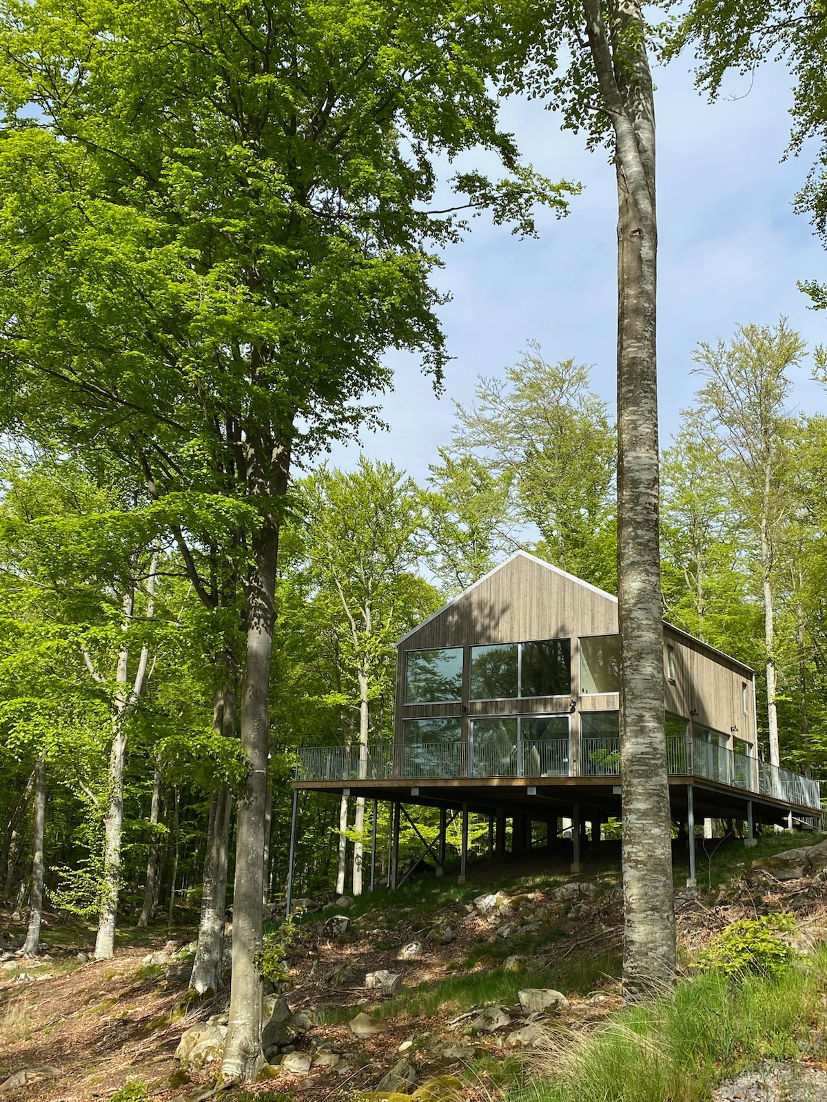 波罗的海旁边山毛榉林中的房子。