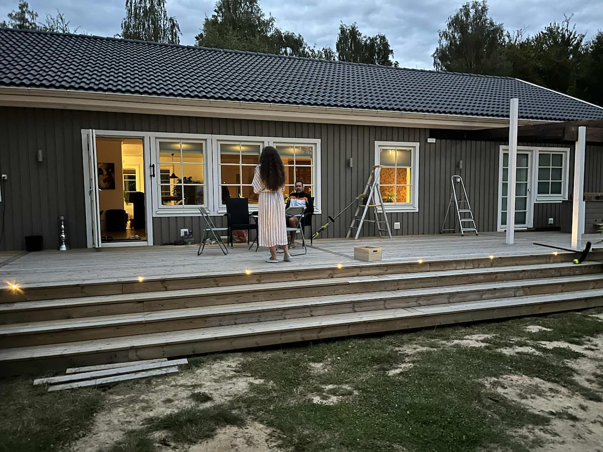 Relax in this newly built, unique and quiet accommodation right by the sea. Holiday cottage with own entrance and sea view. Perfect stay for holiday, golf, nature exploration, fishing or relax near the sea. The house has 2 bedrooms, toilet and kitchen/living room and its own patio. Near: Mörrum 5 km (fishing in Mörrumsån, golf course). Karlshamn 8 km (shopping, restaurants, cafes, archipelago). Sölvesborg 25 km (shopping, restaurants, cafes, golf course). Sweden Rock Festival 15 km.