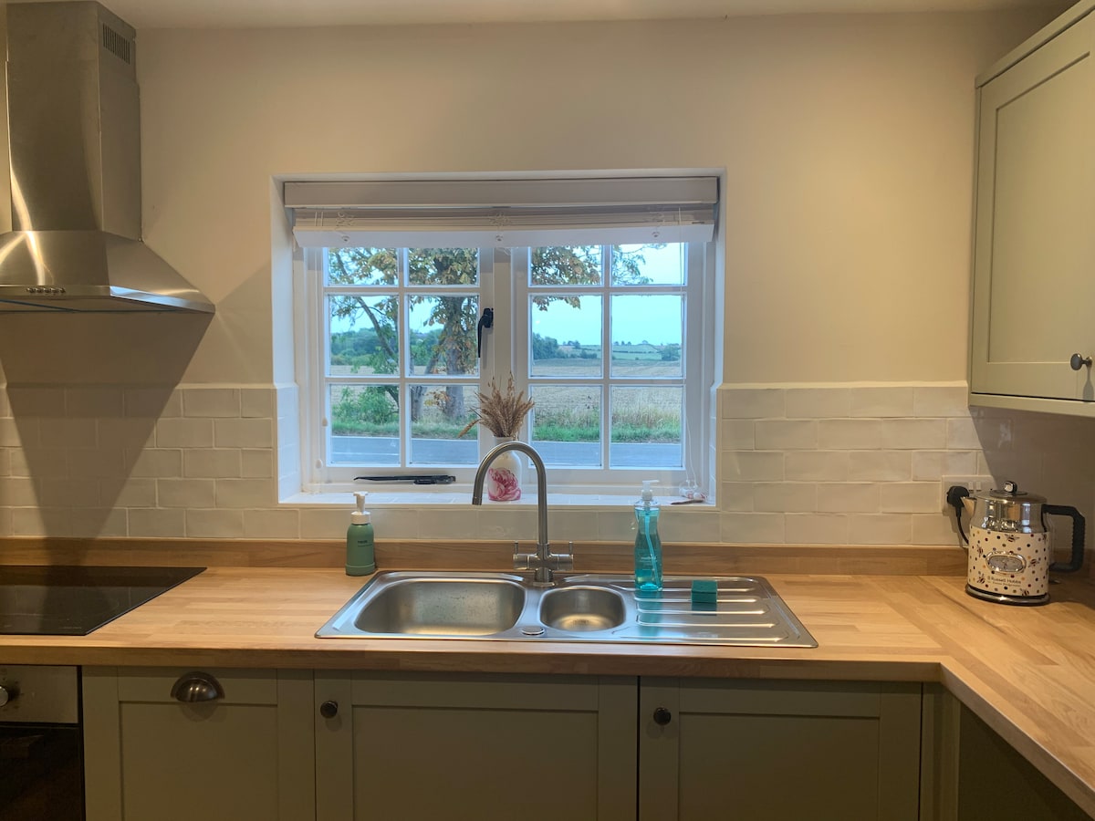 Spacious, characterful and cosy barn conversion next door to our cottage in a lovely rural north Bedfordshire village. A large comfortable living room with log burner and a kitchen stocked with all the food essentials for breakfast including home made bread. The bedroom is spacious and there's a luxury shower room. Private access is via a side gate and separate private entrance. Lovely village pubs and a shop are a short stroll away and lots of other great places to eat are nearby