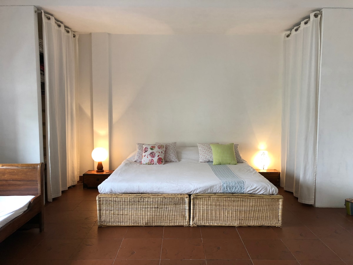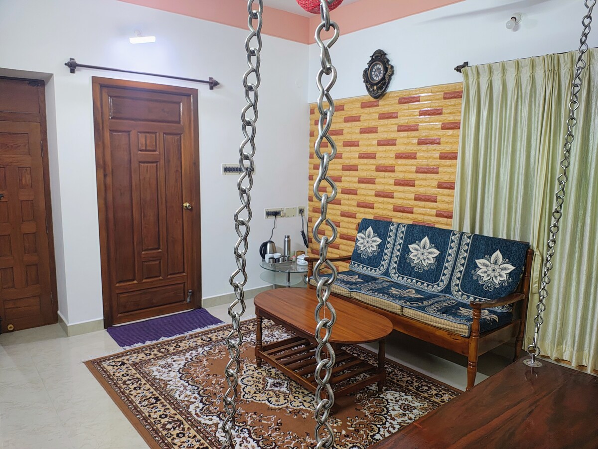 Your home away from home in Auroville has been tastefully decorated to a Chettinad theme. Every corner of our home is Instagramworthy with colourful interiors, kolam art, antique decor and more. The 1BHK can comfortably accommodate up to 4 persons with a swing bed and sofa bed in the living room. hile there are plenty of restaurants nearby, our kitchen has been thoughtfully equipped for all your needs - be it to make a quick omelette or a full Indian meal. So sit back, relax and sip your coffee.
