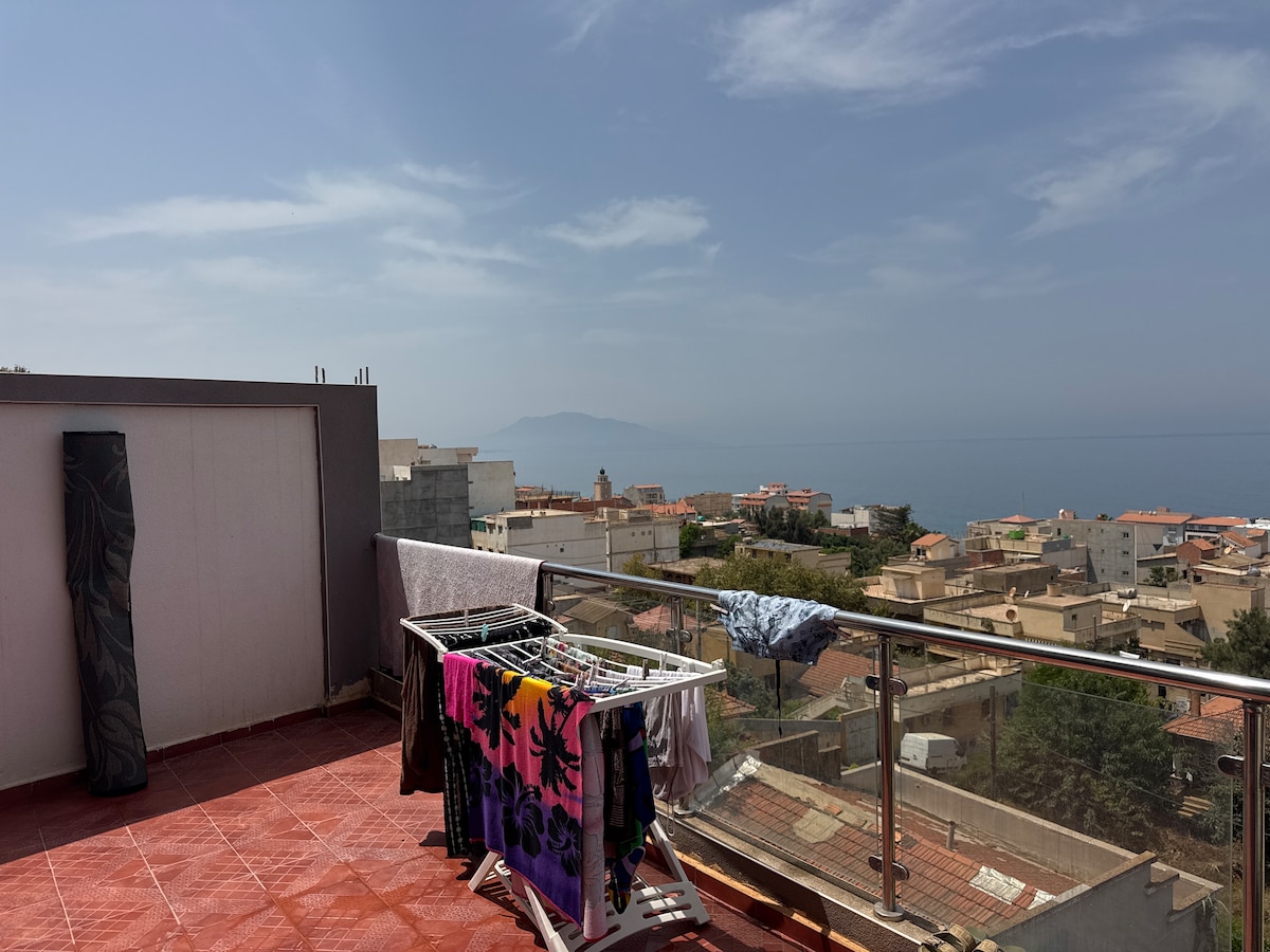 Ce logement paisible au 4emme et derniere etage (sans ascenseur) offrant des moments de détentes pour toute la famille. une belle vue sur mer, il dispose d'une grande terrasse pour vos repas à l'extérieur, et de deux chambres équipées , un salon , lappartement est situés à environ 700ml d'une plage de sable et juste en face de la mer ,pas loin du port et de tout ce dont vous aurez besoin , une fois installé tout peut se faire à pieds plus besoin de voiture , le complexe touristique CET à 20km