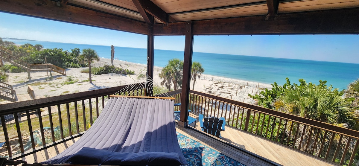 All photos seen may be slightly different along with amenities offered due to Hurricane Helene and Milton. We are open. So please ask what is currently available This bright private unit is located on Manasota Key across the street from the Gulf and a short walk to Stump Pass State Park. We have private front and back decks have large sliding glass doors and you can hear the waves crash from anywhere in the house. The island restaurants are open. There is nightly entertainment and music on the i