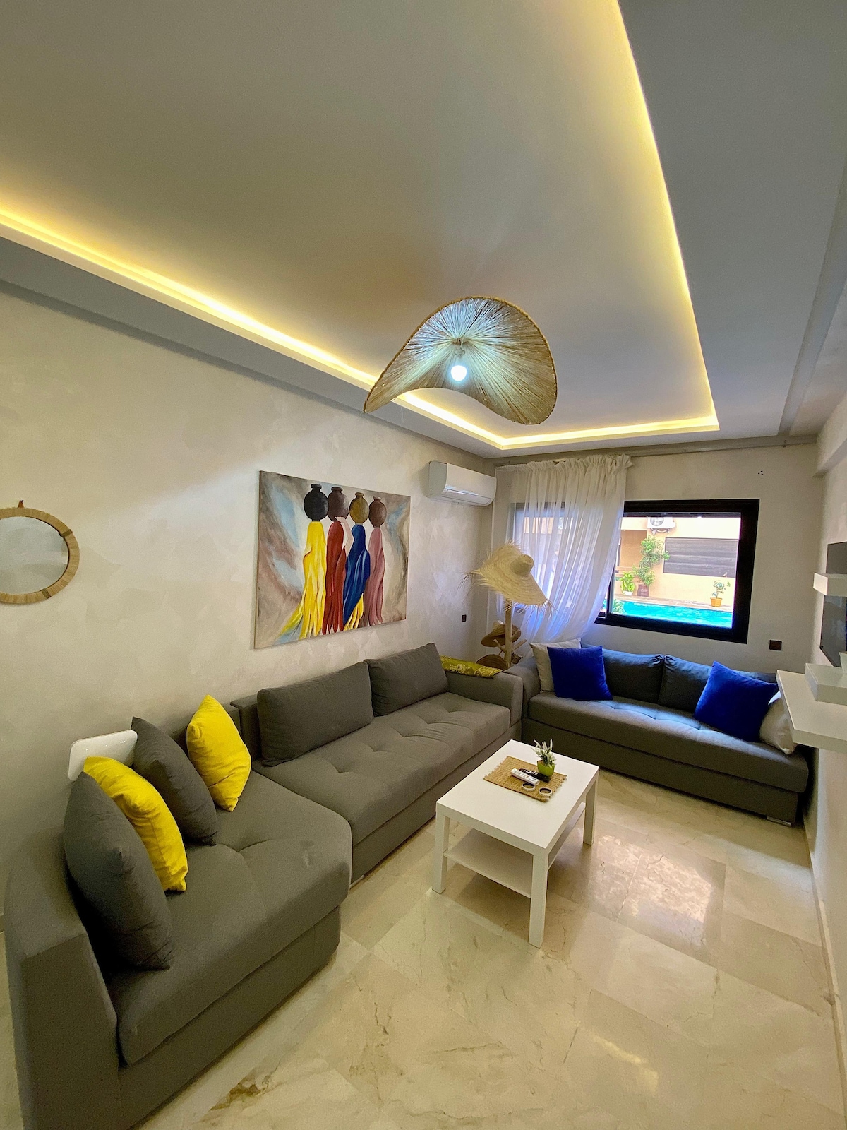 Séjournez en plein cœur de Marrakech dans notre appartement 2 chambres et 2 salles de bain. Profitez d'Une literie Simmons haut de gamme, WiFi haut débit (fibre optique) et d'une décoration moderne avec un bassin privé. Cuisine entièrement équipée, baignoire élégante, et douche italienne. À quelques pas de la place Jemaa el-Fna, du Plazza, et du Carré Eden. La piscine n’est pas chauffée. NB: Les couples marocains non mariés ne sont pas autorisés.