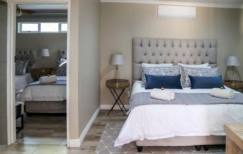 Family unit consisting of 2 bedrooms with a king bed as well as 2 single beds. En-suite bathroom with bath and spacious shower combo. 40 inch and 32 inch TV's with DStv. Free Wi-Fi, Air conditioning. Coffee station with mini bar fridge.