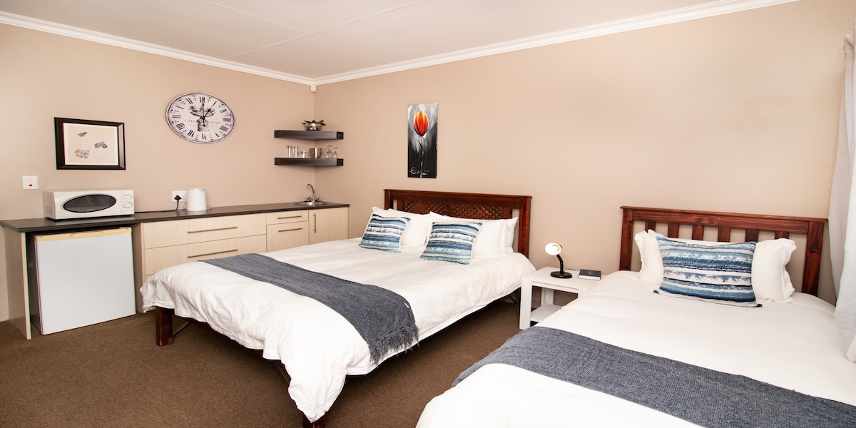 The garden cottage available at Albion B&B is situated in Westdene, which is regarded as one of the nicest suburbs of Bloemfontein. Perfect for guests looking for comfortable lodging, close to the city center and a variety of activities. It has one bedroom with a queen bed and another one with two single beds, with one bathroom with toilet and another separate toilet. It has a kitchenette with a microwave, mini-oven, fridge and toaster. It has a private entrance and small courtyard.
