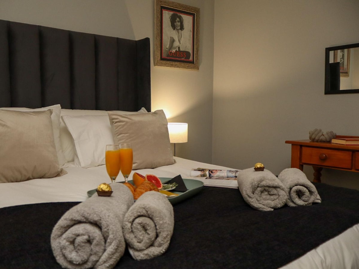 We offer a luxurious and fully equipped retreat designed for comfort and relaxation. This modern home features two spacious bedrooms and 2.5 stylish bathrooms, providing escape for families, business travellers, or weekend getaways. The private office space ensures productivity. Enjoy the cozy TV lounge, dining area, and a fully equipped kitchen. For entertainment, the braai room with a built-in pizza oven for gatherings. Step outside to unwind by the swimming pool. Air-conditioning throughout.