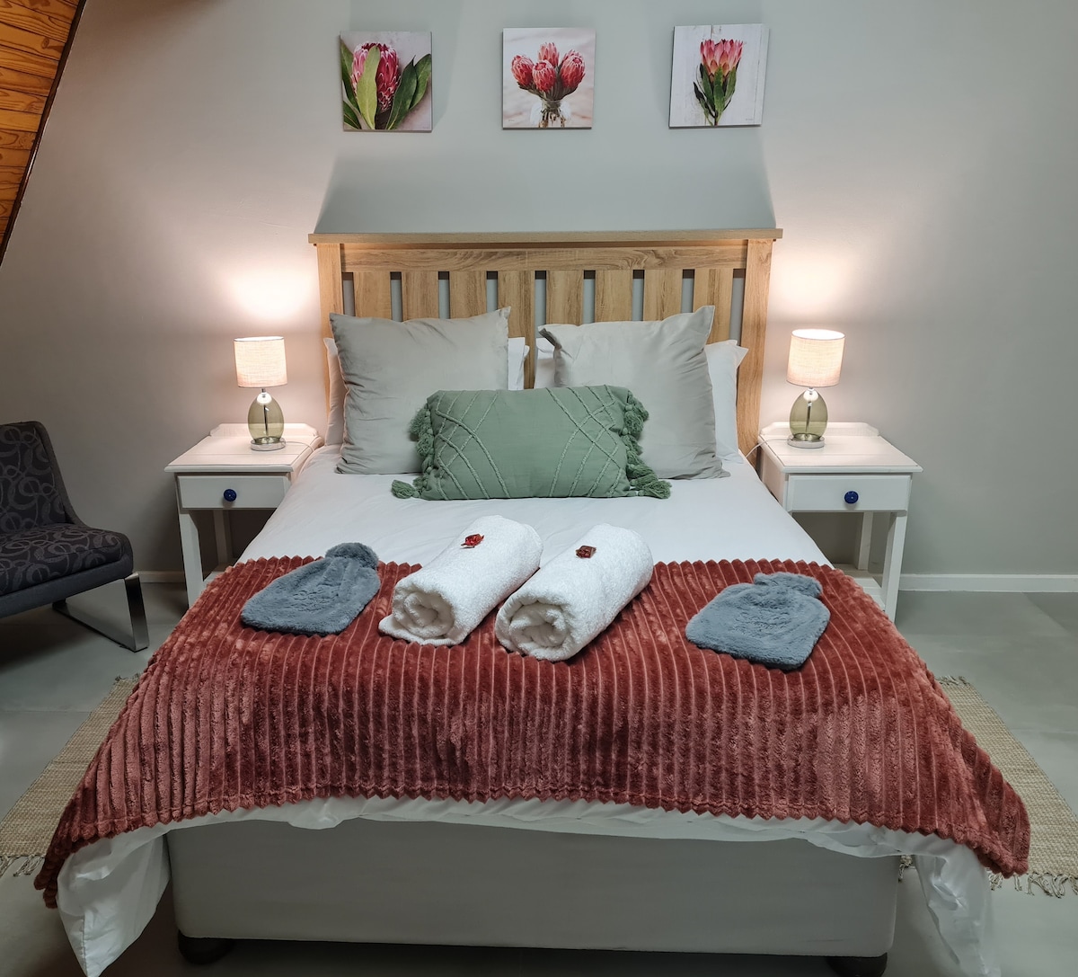 Come experience this comfortable and unique studio apartment - the Upper Room at Kotzé Art Gallery! Surround yourself with beautiful original art and handmade furniture. Centrally situated in the northern suburbs close to Mediclinic, Malls and various schools. If attention to detail is your thing, book your stay with us!