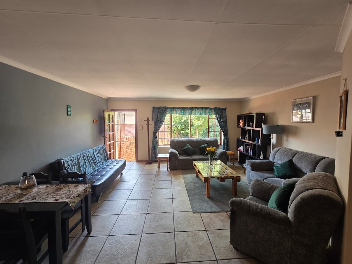 Spacious home next to a green area with 4 available bedrooms and 2 bathrooms (each with a shower and bathtub). Wifi&TV during loadshedding; Secure parking with CCTV cameras. Outside seating area and garden. Large kitchen & dining room; TV room and cozy reading nook. Uncapped fibre internet and wifi. Close proximity to gym (1.7km) ; restaurants and bars. +- 3 km from N1. +-6 km from University of the Free State +- 7 km from Grey College +- 7 km from Mediclinic Hospital and Mimosa Mall