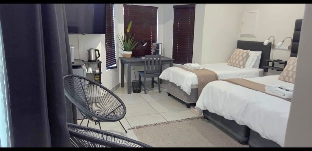 Located in the Northern suburbs. Walking distance to BaysVillage shopping centre, Northridge Mall and VirginActive. 5km drive to N1 (Kenneth Kaunda str) and airport. 7 min drive to the CBD. Some attractions of the area: Naval Hill / Nelson Mandela statue with a 360° view of the city. Oliewenhuis Art Museum, Bagamoya Wildlife Estate etc Laptop friendly space with free uncapped WI-FI 24/7 Ideal for business execs and guests that need to stay connected. Competitive long stay prices from 7days