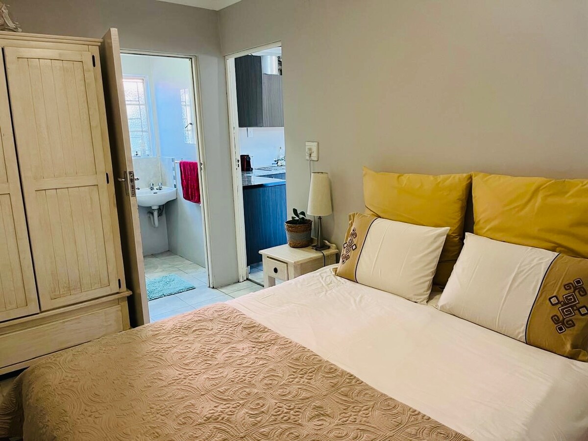 The studio has a queen size bed, desk and chair, armchair, dining table w/chairs and an en-suite with shower. The kitchenette is equipped with a gas stove, fridge, mini freezer, microwave, toaster and kettle. You will also find coffee, tea, sugar, salt and pepper and borehole water!!! The flat has a TV connected to satellite and free WI-FI. You have your own entrance to the flatlet from the driveway. The 24 hour alarmsystem protects the flat and your car.