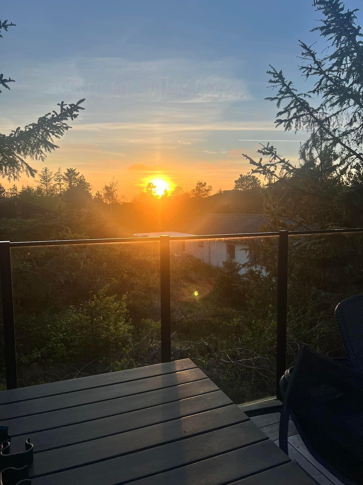 Få minutters gang fra det brusende Vesterhav ligger dette 120 m2 unikt beliggende sommerhus, gemt så godt væk i de høje klitter, at man kun kan ane det fra vejen. Fra grundens højeste klit er der bænk med udsigt til hav og solnedgang. Tag en kop kaffe eller et glas vin med derop. Der er blot 11 km i bil til badebyen Blokhus, 15 km til Løkken og endnu kortere via områdets stier til fods eller på cykel. Endvidere et fantastisk område, hvis man er til mountainbiking eller naturvandring.