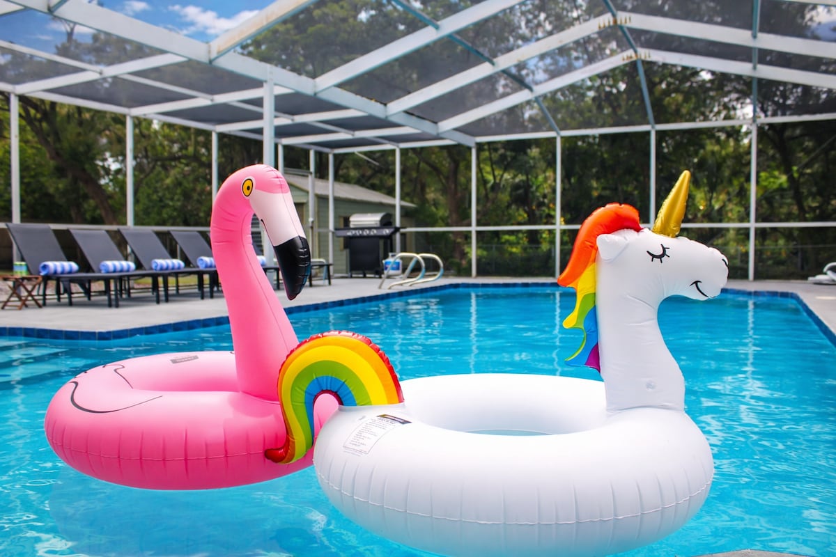 坦帕附近的加热泳池,配备游戏、火坑、加大双人床
