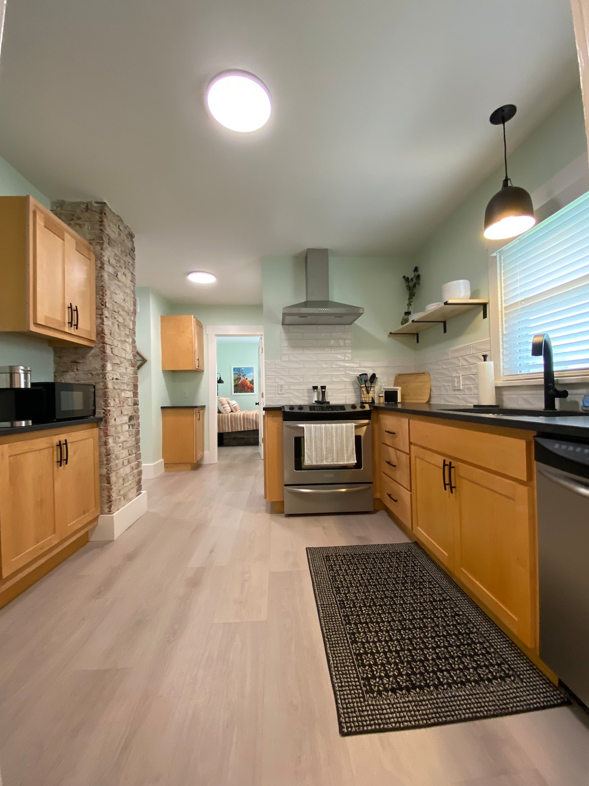 Light filled and snuggled in the mature trees of Maplewood neighborhood. This single story brick home is centrally located; close to Uptown and Downtown, the campuses of ISU and IWU and less than 10 minutes from Rivian and State Farm. Newly renovated and designed with a modern aesthetic, our guests come to explore Bloomington/Normal but tell us they are just as happy spending time and relaxing at our Modern Ranch. Newly installed electric vehicle charger is available during your stay!