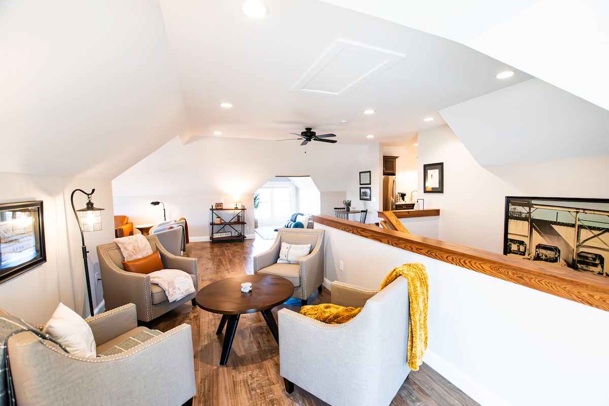 Downtown Little 500 Themed Condo 🏡🎉 - Prime Location – Walk to IU, downtown bars, restaurants, and the B-Line Trail! - Spacious & Comfortable – 2-bed, 2-bath condo sleeps up to 6 with 2 king beds and an air mattress. - Entertainment Ready – Ping-Pong table, 65” OLED TV, and a private deck for relaxing. - Kid & Pet Friendly – Bring the whole family, furry friends included! - Private Parking Garage – Hassle-free parking in the heart of Bloomington. Book now for the ultimate B-Town stay!