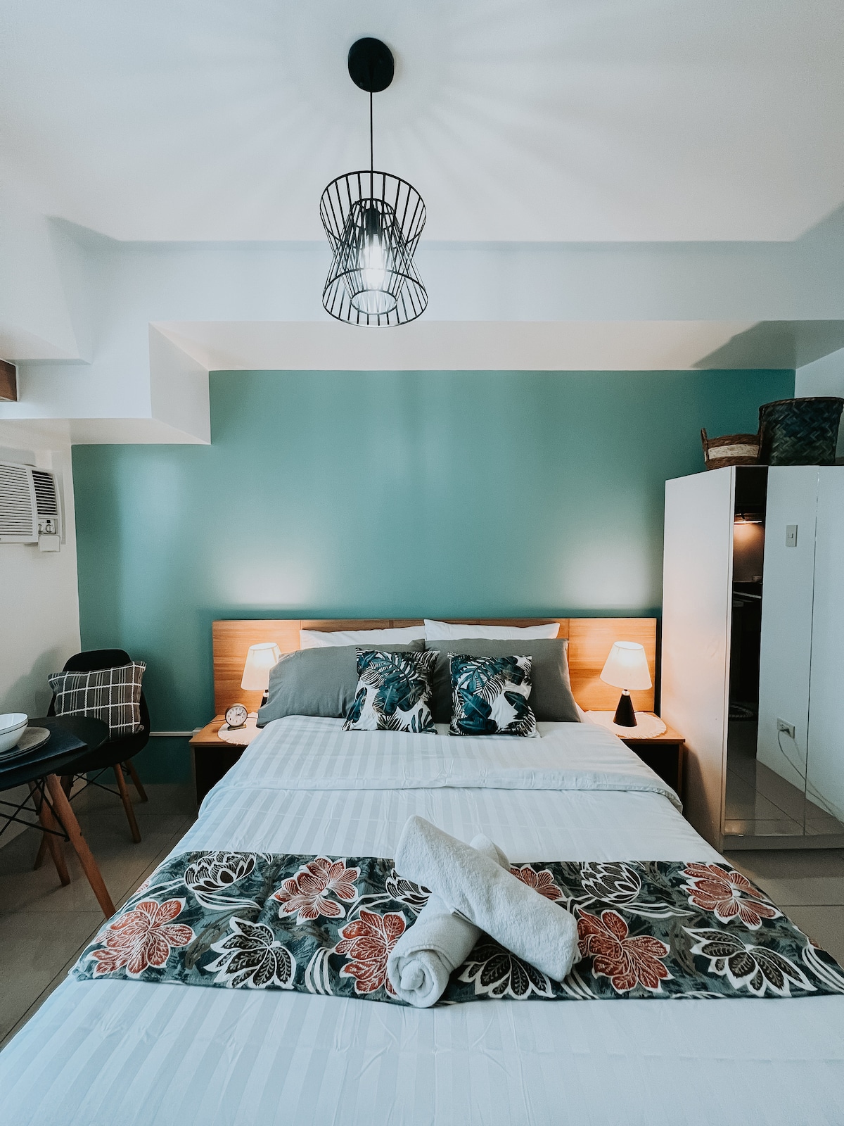 Stay at this Wabi-Sabi studio on the 30th floor of Horizons 101 in central Cebu City. With earthy tones, comfy linens, and warm wood accents, it’s got the perfect relaxing ambiance. You’ll be close to Fuente Osmena and have easy access to transportation. Ideal for travelers, couples on a getaway, or friends out to explore the city. Book your stay in this stylish studio today!