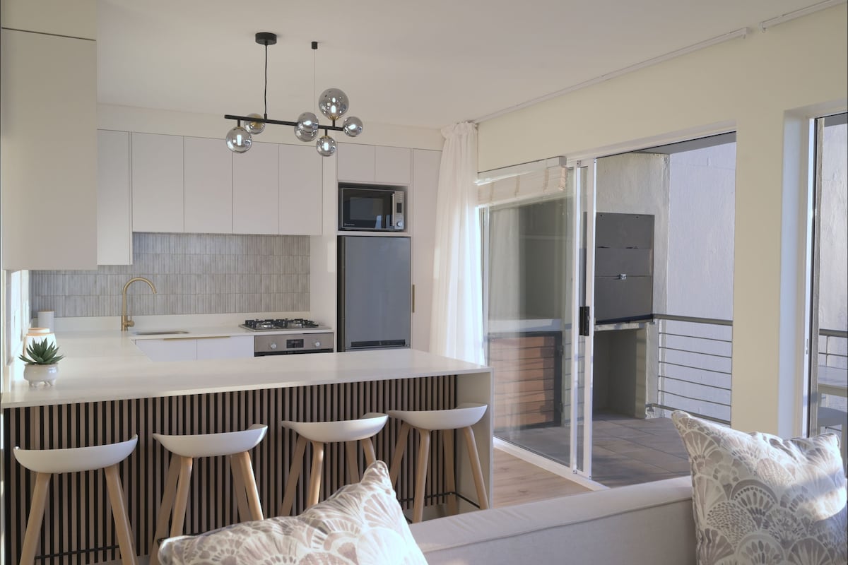 Enjoy a stylish experience at this ultra modern centrally-located apartment one road away from the famous Kite beach in Bloubergstrand. Hear, smell and see the ocean as you relax in the living room or work at the dedicated work space provided for corporate travellers. BONUS! The apartment has back up power provided during load shedding (power cuts) so guest will still be able to enjoy the internet and some lights, TV etc.