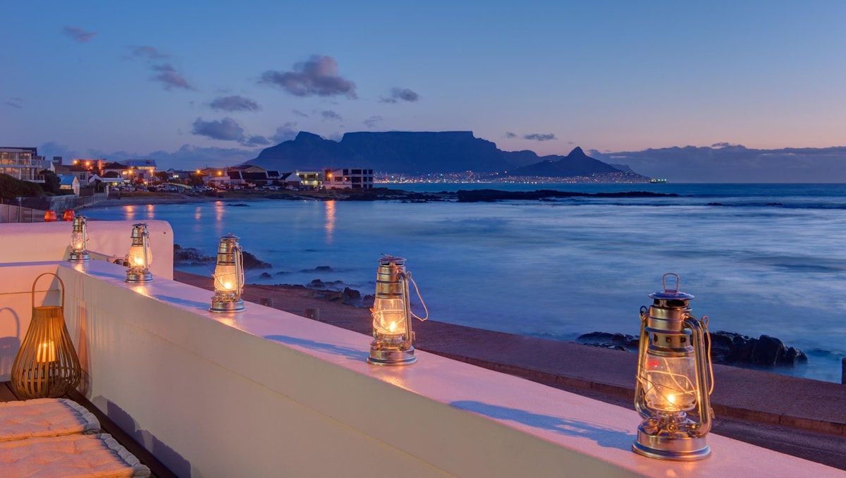 Welcome to this beachfront property. The light and open apartment is an easy 8km from Cape Town's city center. The spacious apartment has direct access to the beach as well as breathtaking table mountain and sea views. Fall asleep to the sound and smell of the ocean and wake up ready to enjoy the pool, Beach and Cape Town's many attractions. Has battery backup for WiFi and TV during load shedding. The following TV streaming services are included: AmazonPrime Video, Disney plus.