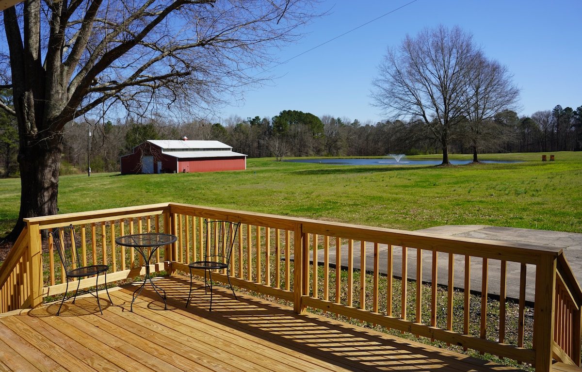 私人温水泳池、钓鱼池、10英亩度假胜地