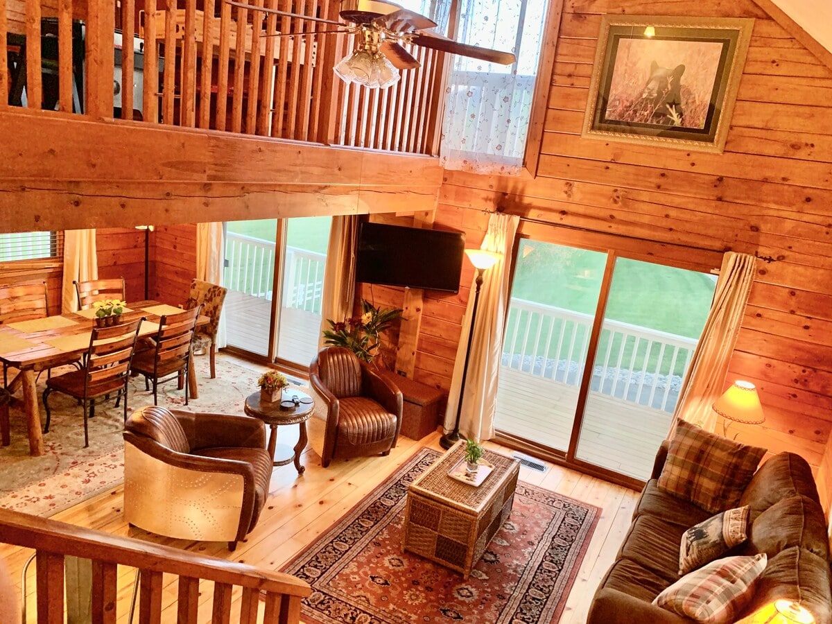 5英亩3卧/3卫小木屋,带热水浴缸、景观、无线网络