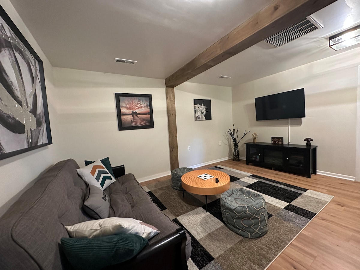 Enjoy staying in the "Peaceful Side of the Smokies" at this beautiful cabin in Townsend, TN. Relax with the whole family and enjoy the great amenities such as a large deck, hot tub, spacious living room, and outdoor space for family events. Garage can be used for indoor family fun on rainy days, playing ping pong, corn hole, etc. Kitchen is stocked with all cooking essentials and bathrooms have complimentary supplies so you can travel light and still have all your necessities.
