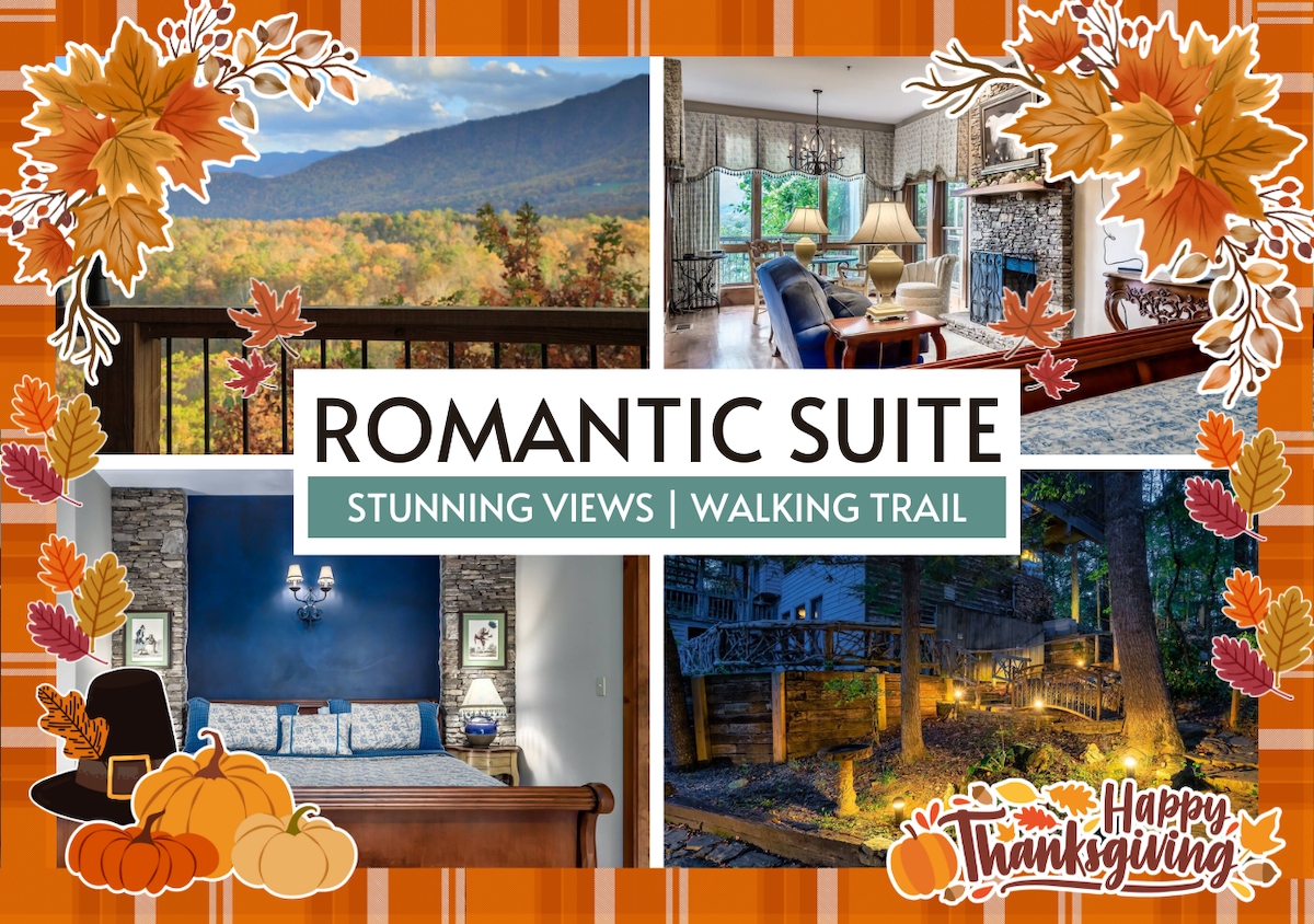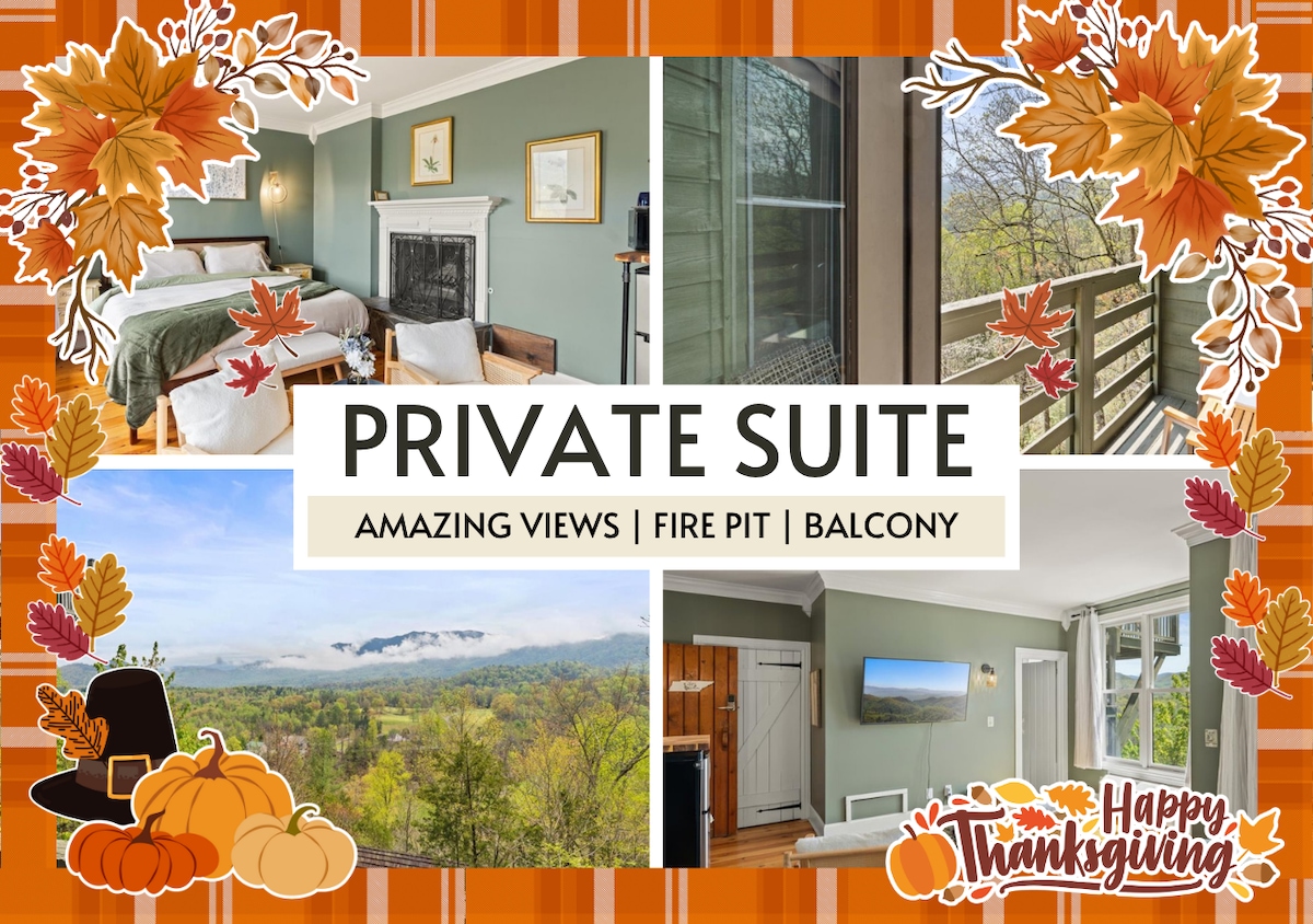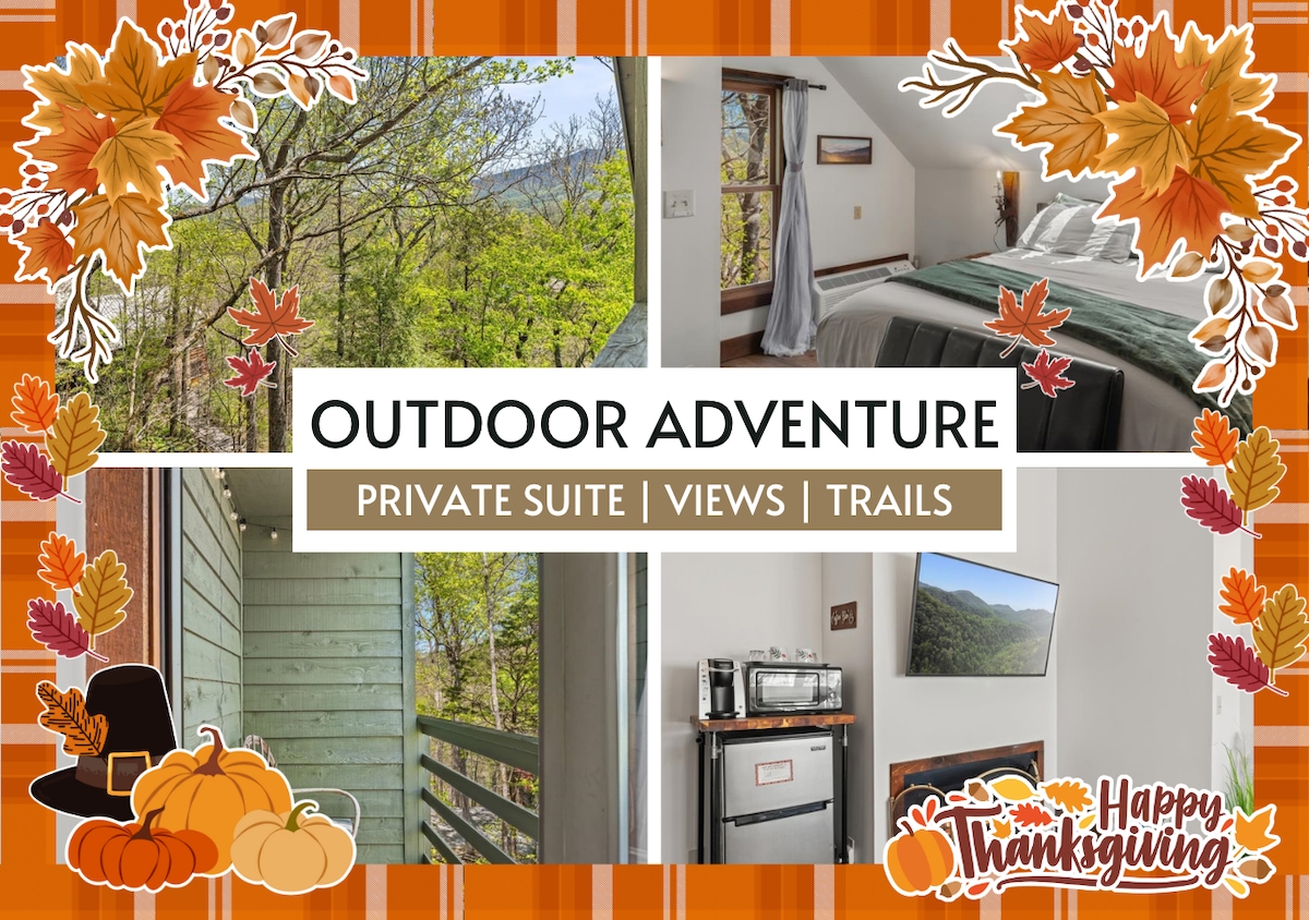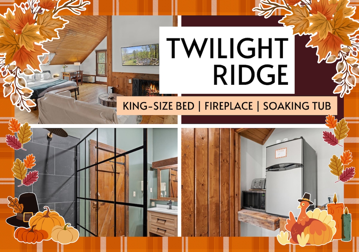 ★ “Twilight Ridge was the most peaceful place I’ve stayed. We watched the stars through the skylights and had coffee on the balcony—it was perfect.” ★ Twilight Ridge is your personal pocket of peace in the Smoky Mountains. This spacious suite blends mountain charm with modern comfort—skylights above the bed, a cozy sofa nook, and a private balcony with forest views—plus complimentary breakfast each morning.
