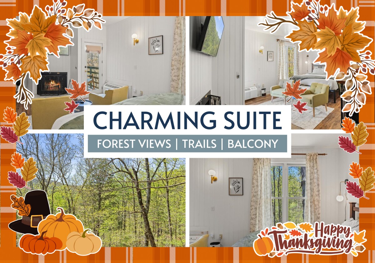 ★ "Beautiful room with even better views! I’d love to stay here again. Thanks for hosting us!" ★ Escape to the Bordeaux Suite for a romantic retreat! With breathtaking Rich Mountain views, this charming chalet invites relaxation. Savor crisp air from the porch rocking chairs or unwind in a spacious suite with a king bed and 55’’ Smart TV. Explore walking trails, koi ponds, and a quaint chapel—plus enjoy complimentary breakfast each morning.