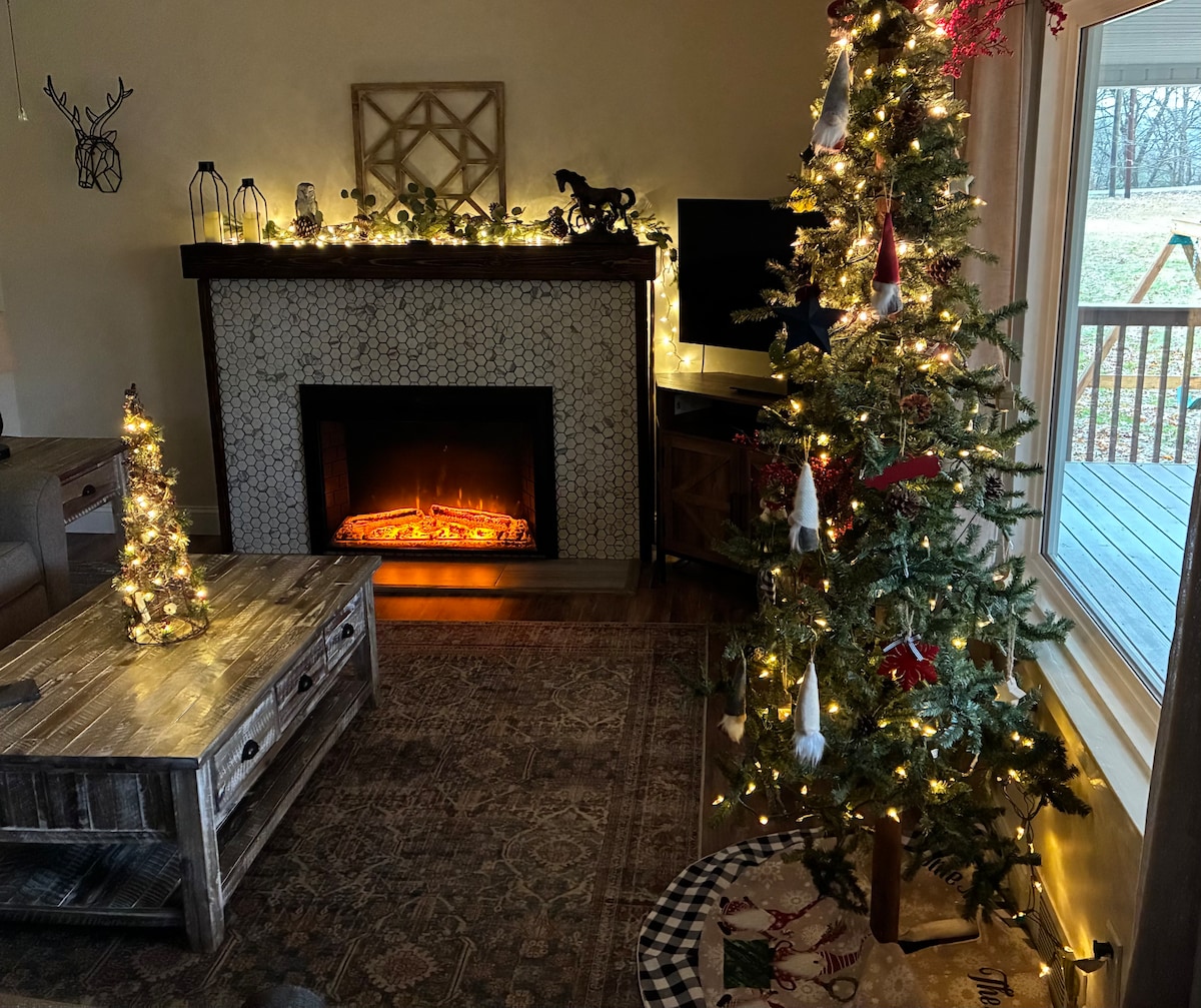 Relax with the whole family at this peaceful cabin on the Little River at the boundary line of the Great Smoky Mountain National Park. Ford our small stream in the horseshoe bend of the road as you find your way down to our beautifully decorated cabin. As soon as you get settled, you’ll want to take our private staircase down to the bank of the clean, clear, cold river; where the rushing water cascades over rocks and boulders. Ahhh. Find videos and photos at Evergreen on the River fb