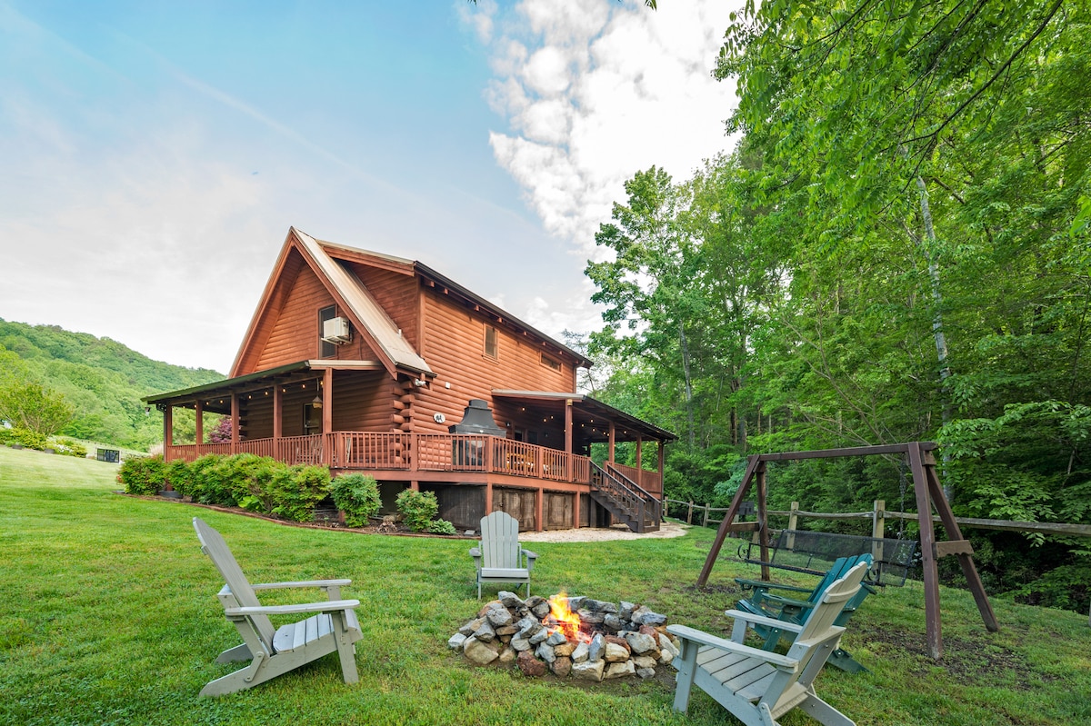 Easy Access Creek Log Cabin w/ Mtn View & Hot tub