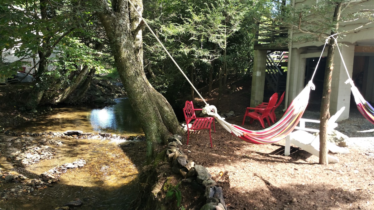 LOCATION, LOCATION, LOCATION...CREEKSIDE RELAXATION! One mile to Hound Ears Golf Club! Moss Creek cabin sits next to a gently flowing creek. Enjoy your early mornings or late evenings next to the fire overlooking the water. A peaceful getaway that is incredibly convenient to the top High Country attractions. Only 5 miles to Blowing Rock, 8 miles to Boone, and 12 miles to Banner Elk. Moss Creek is the perfect location for shopping, dining, skiing, biking, hiking & beautiful family parks.