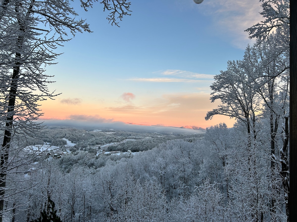 Sleep in the TreeTops, just minutes from the heart of Boone. This is the bottom floor of a duplex. Each floor is private with no shared spaces. Separate entrance + driveway, 1 King bedroom, 1 Queen bedroom, and 1 bathroom in a residential home. The bedrooms, deck, and family room all look out on long range of mountain views. Furnished with personal touches from local artisans including a custom made daybed swing for relaxation. Pets welcome with a $50 deposit in cash or check when you leave.