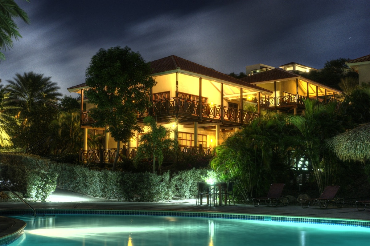 ...where Paradise Meets Luxury... Our PENTHOUSE V.I.P. BLUE BAY BEACH VILLA #5 is RIGHT AT THE BEACH Escape to Blue Bay, where Curaçao reveals its most breathtaking beauty. Bask in the serenity of the crystal-clear Caribbean Sea, unwind on a spacious beach beneath the gentle shade of swaying palm trees, and indulge in the ultimate island lifestyle. Beach, pool, restaurants, bars, dive center, championship golf course, tennis courts, and gym